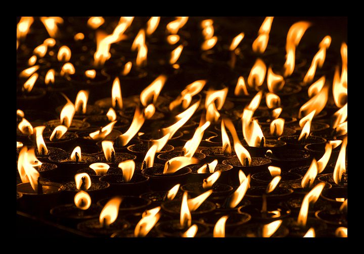 | Butter lamps at the entrance of the stupa at Bodhnath. | |||||||||||